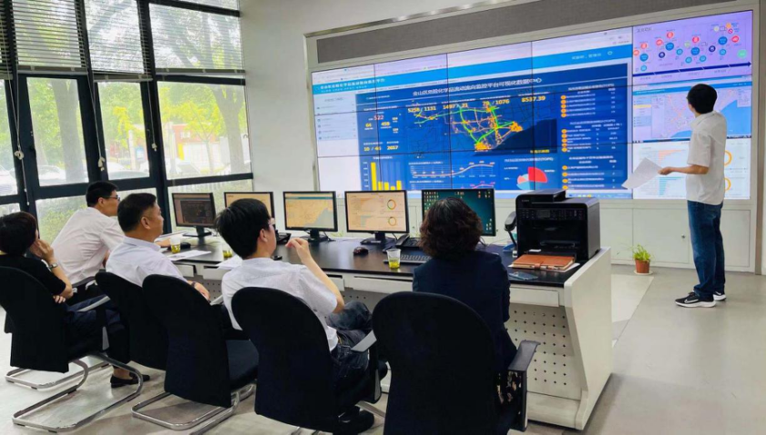 金山區(qū)應急管理局領導一行赴金山區(qū)危化品交易中心考察,?;妨鲃恿飨蚱脚_應用情況(2021/7/2)